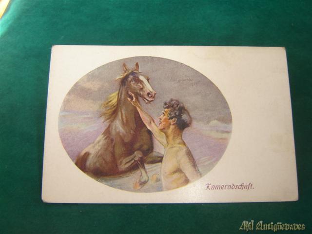 Antigua postal hombre con caballos año 1916.