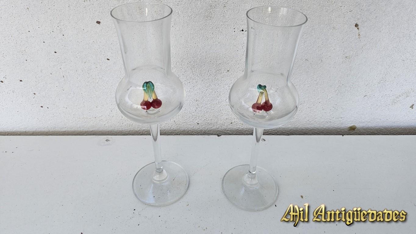 2 copas con figuras de murano
