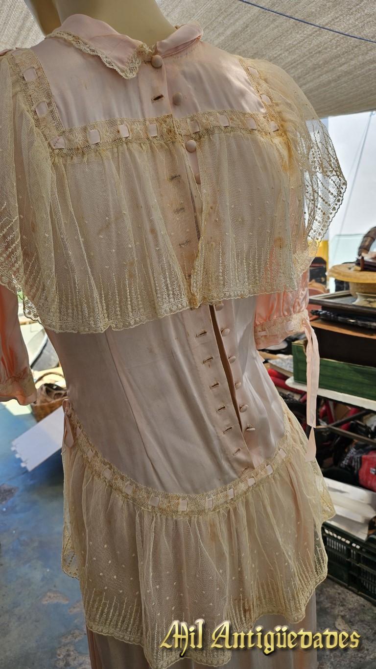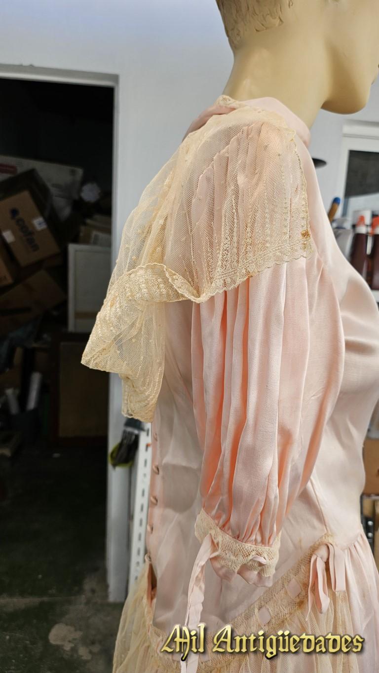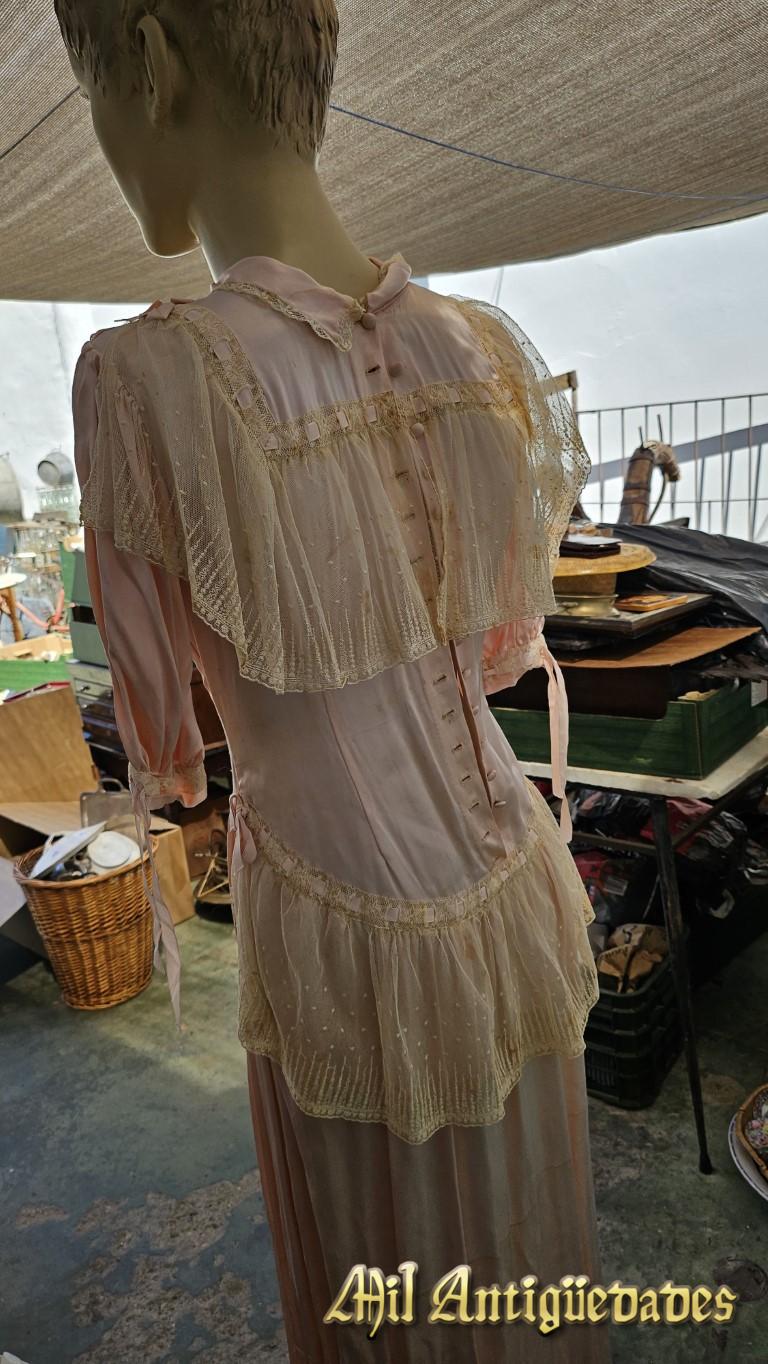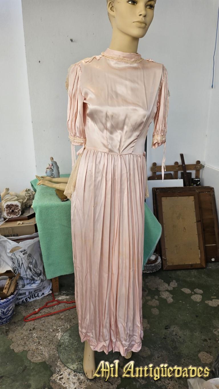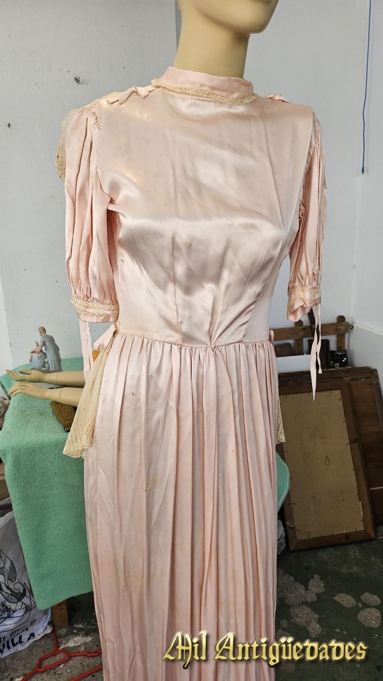 Vestido antiguo rosa en seda