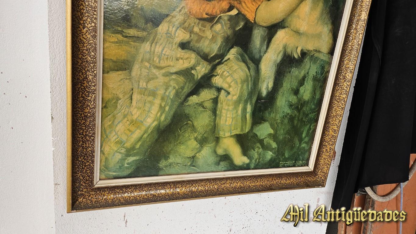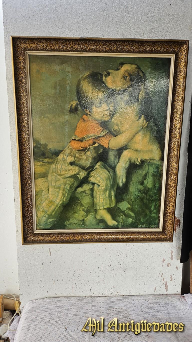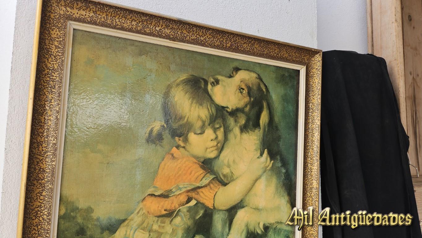 Cuadro litografia niño con perro