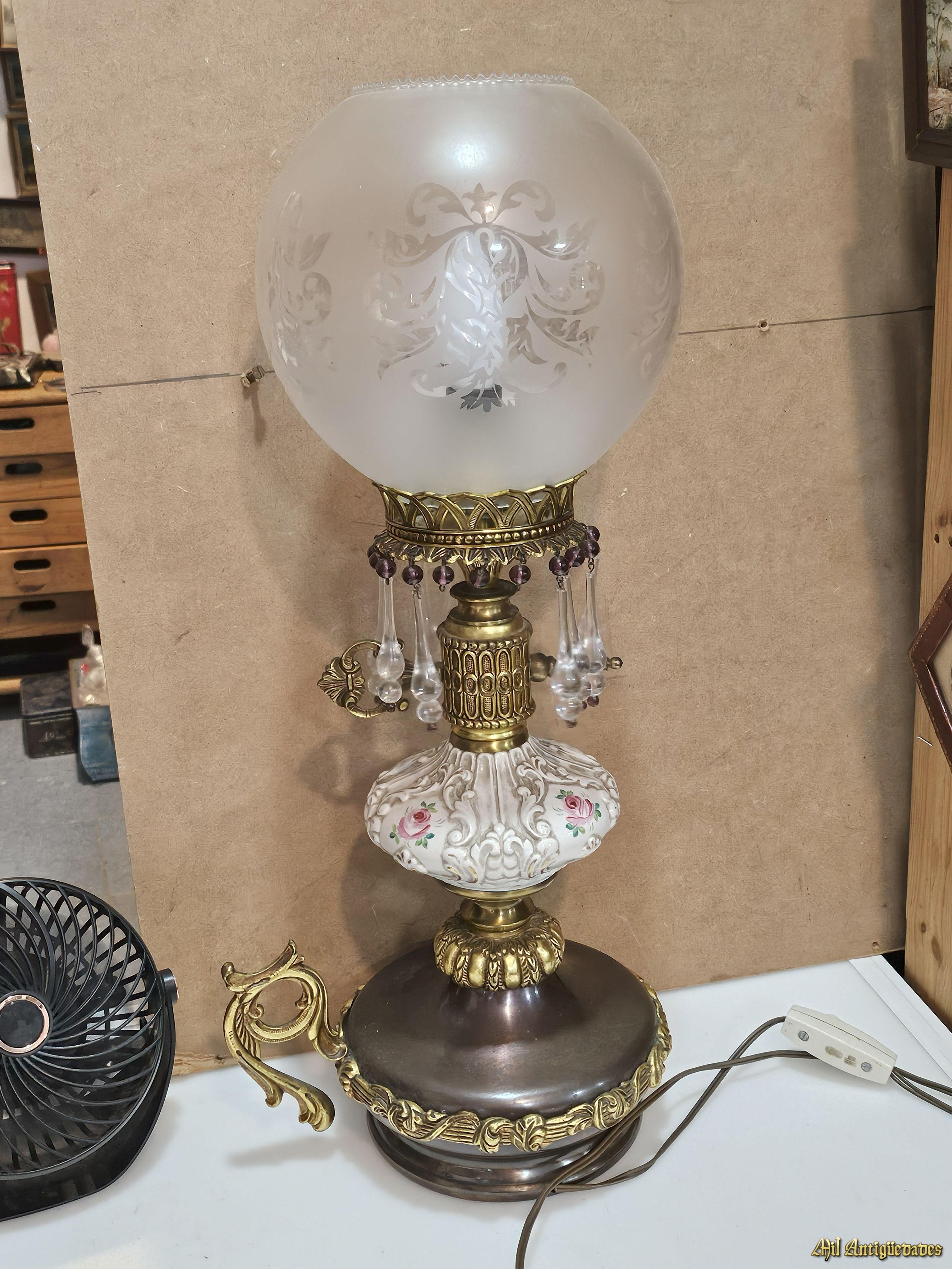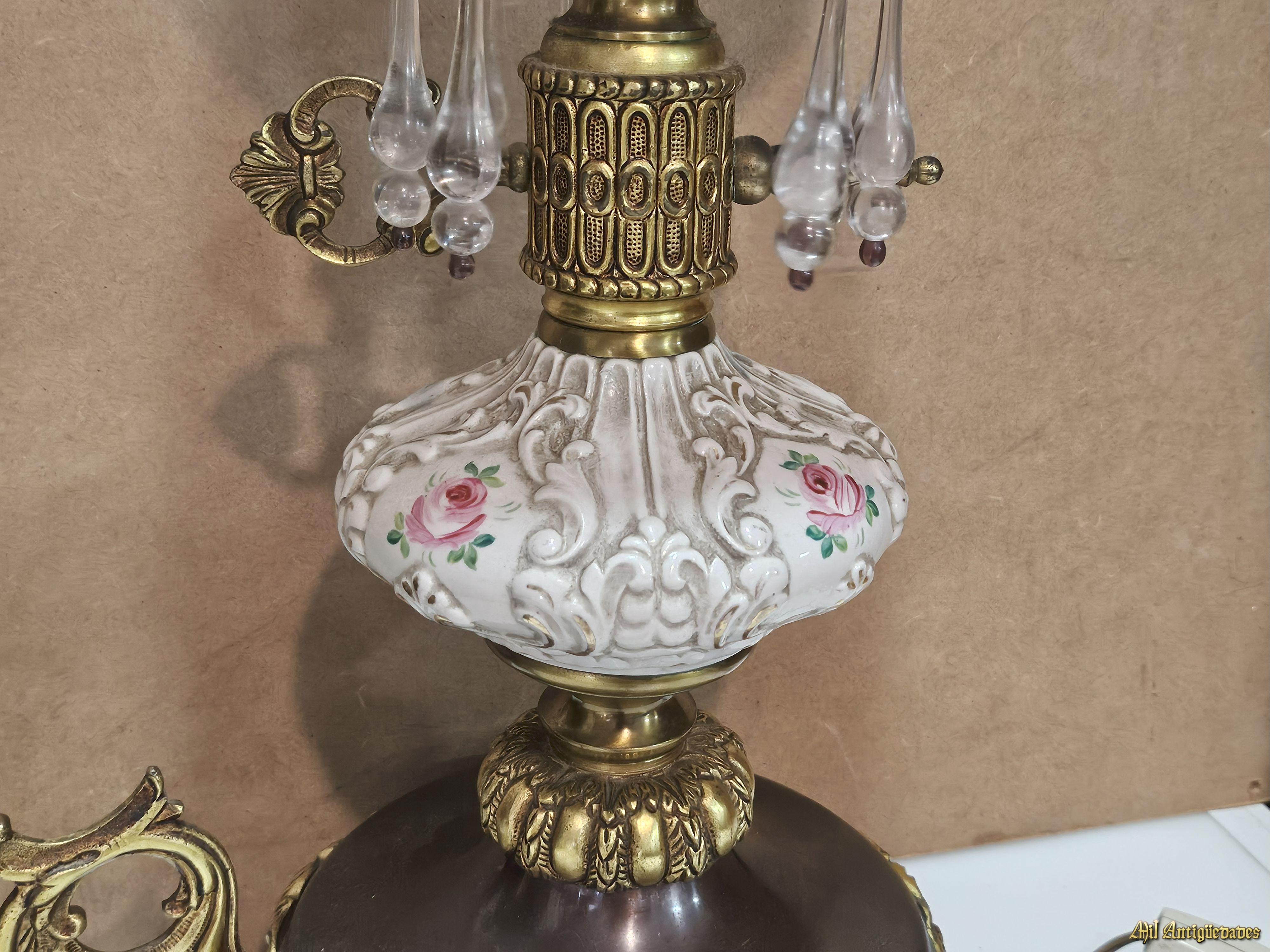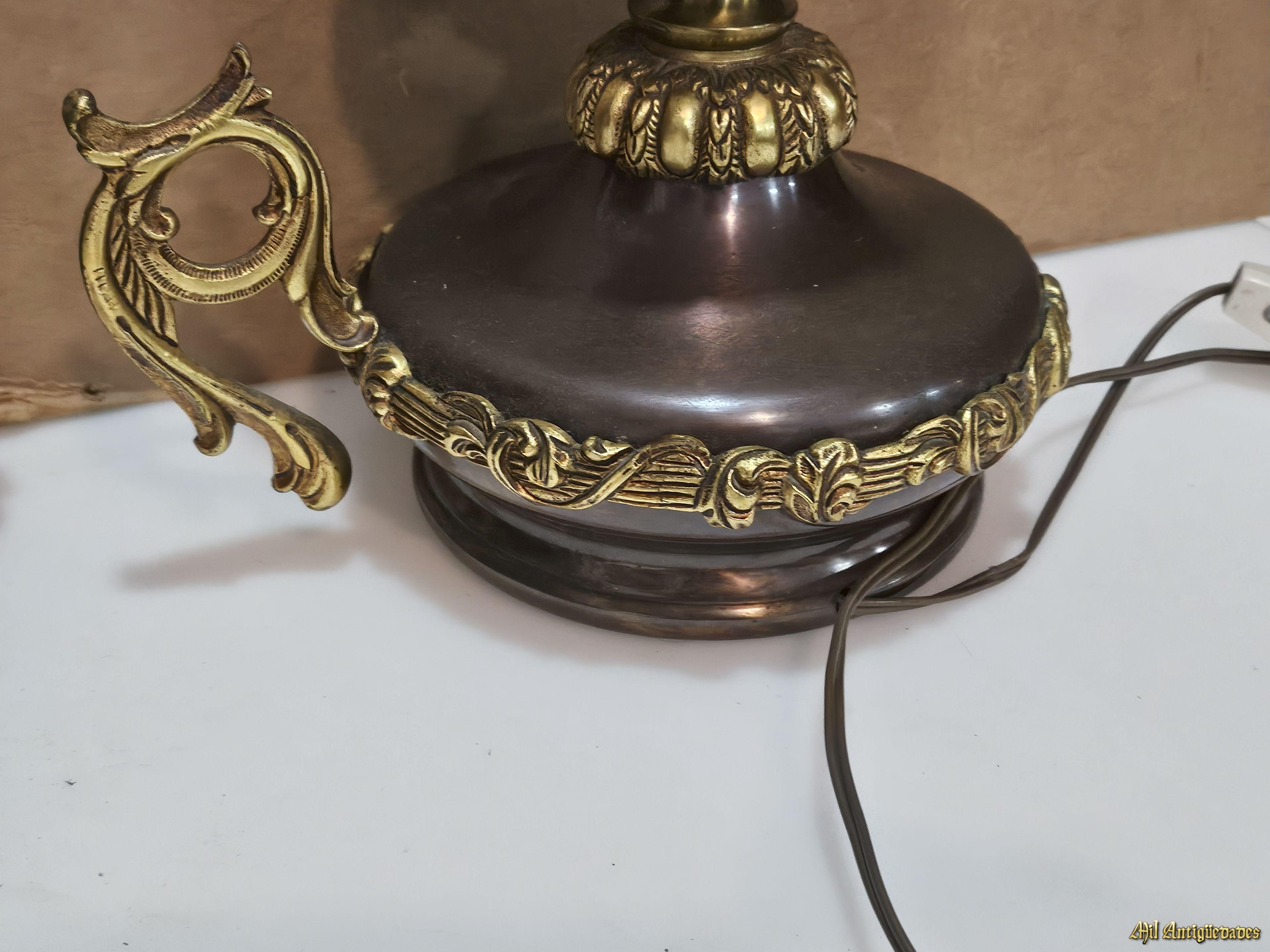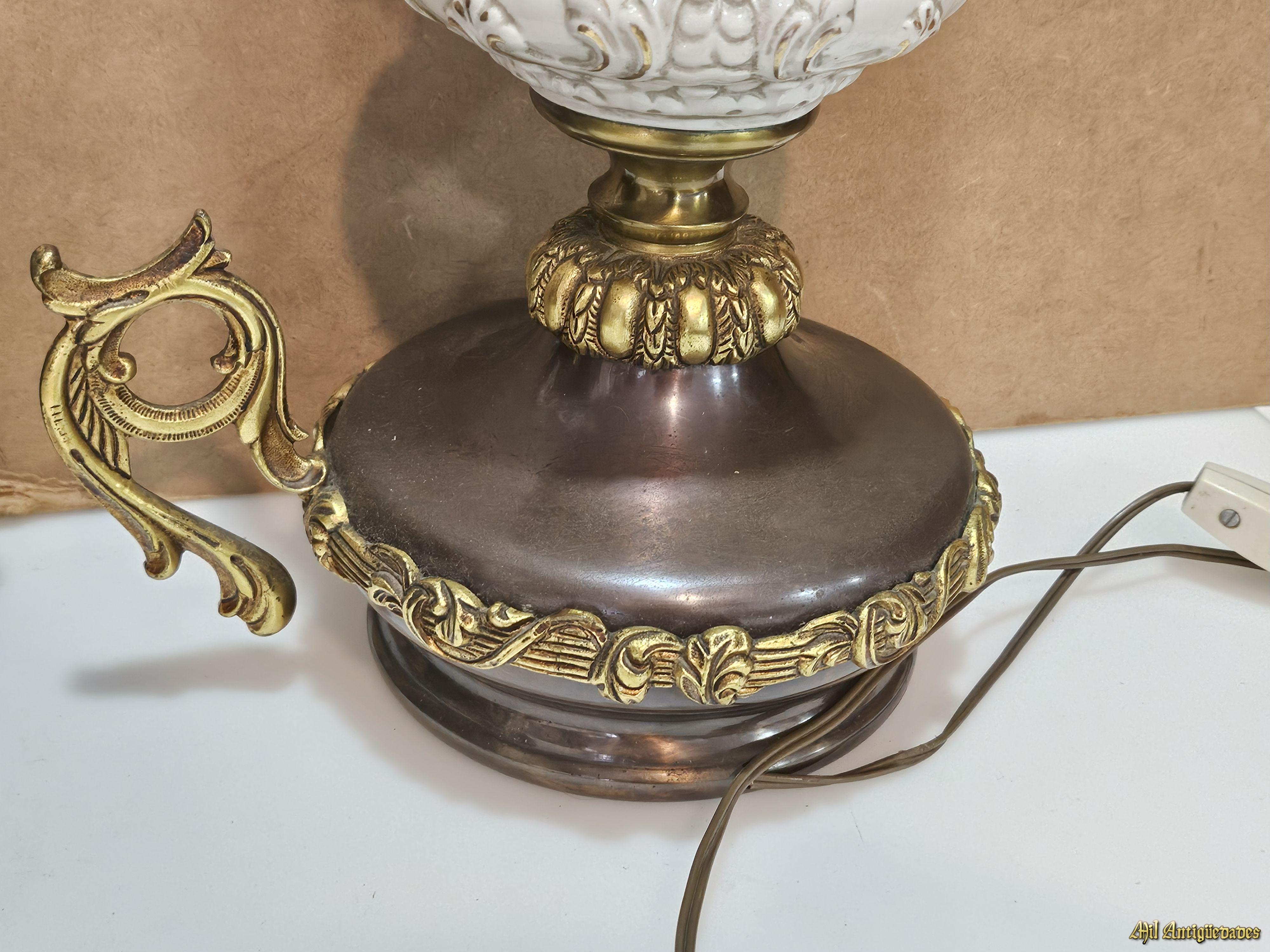 Lampara de bronce y ceramica