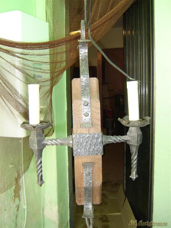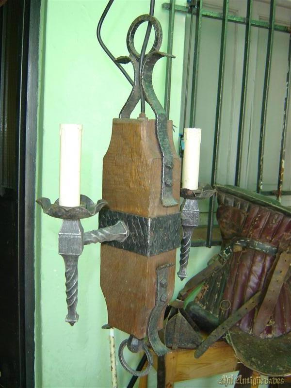Lampara de madera y forja