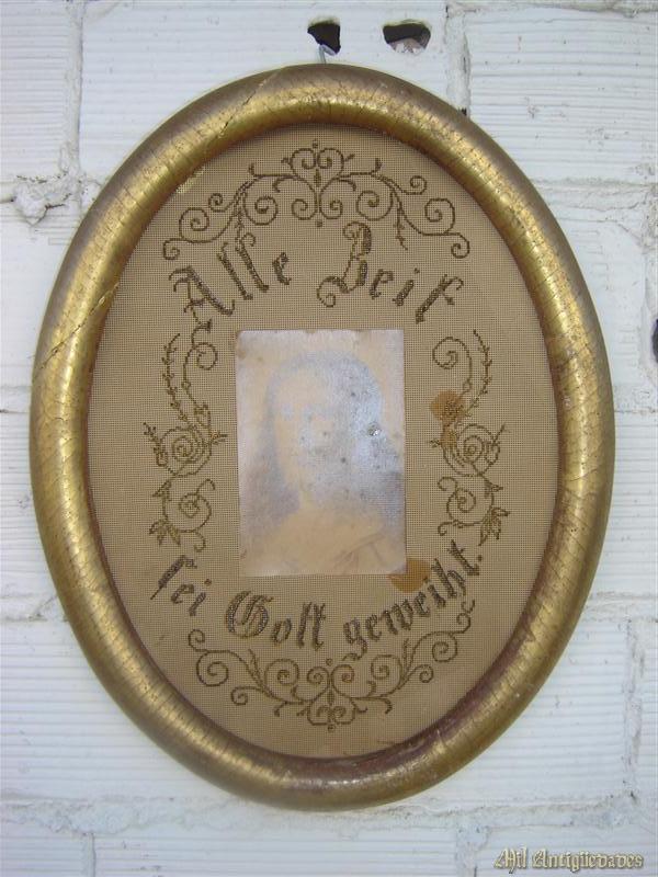 Marco ovalado y lamina bordada