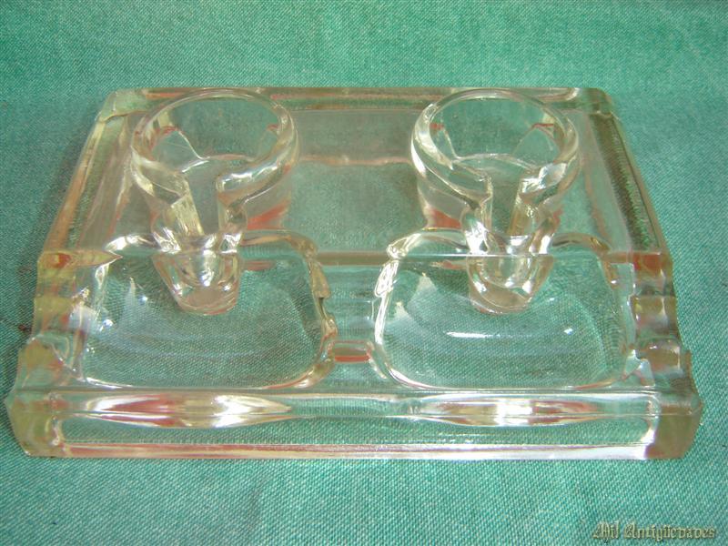 Tintero y escribania de cristal grueso