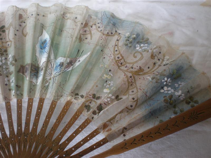 Abanico madera y seda pintado a mano