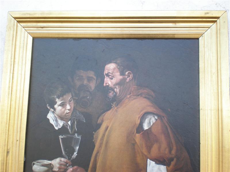 Cuadro en madera dorado y una litografia
