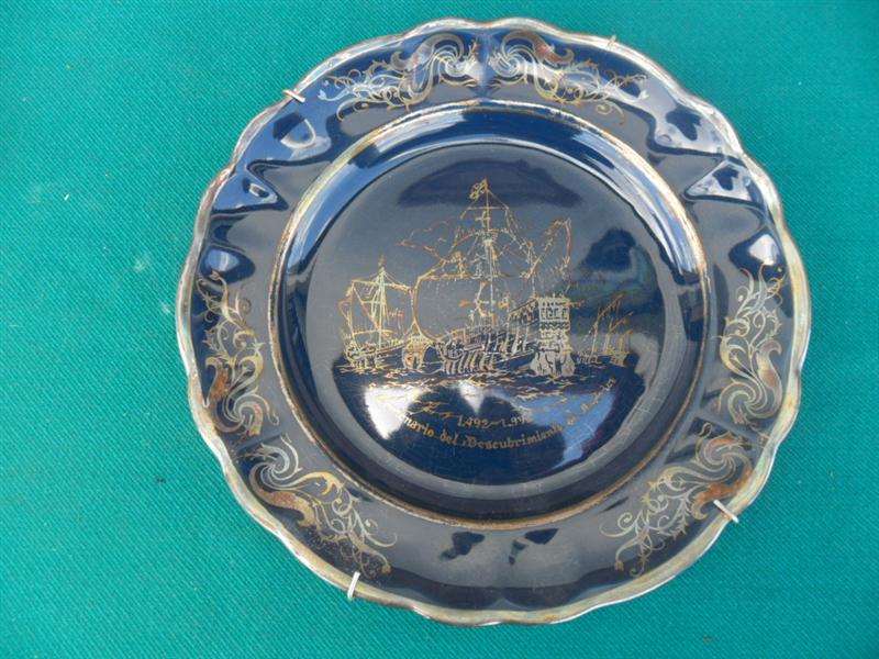 Plato porcelana pintado plata descubrimiento america