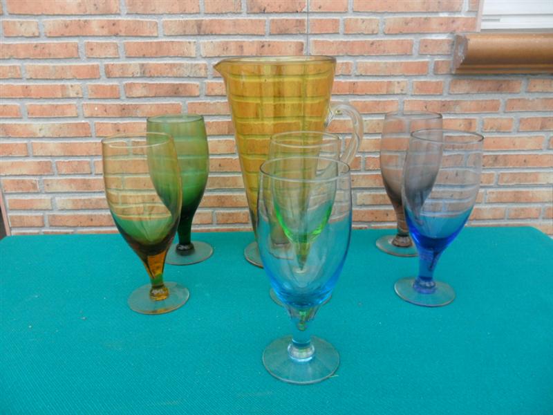 Jarra y copas de cristal años 50