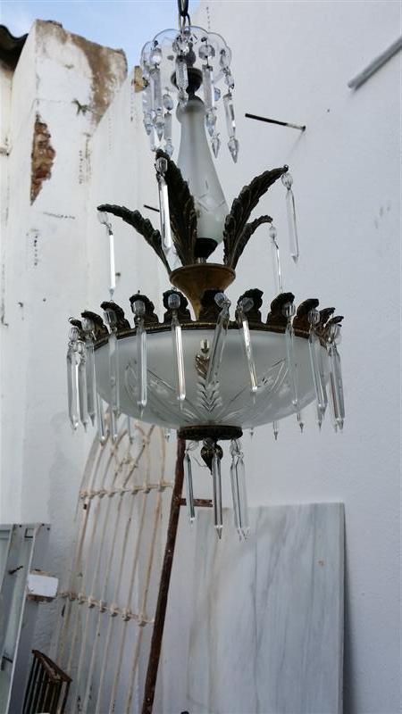 Lampara bronce y cristal