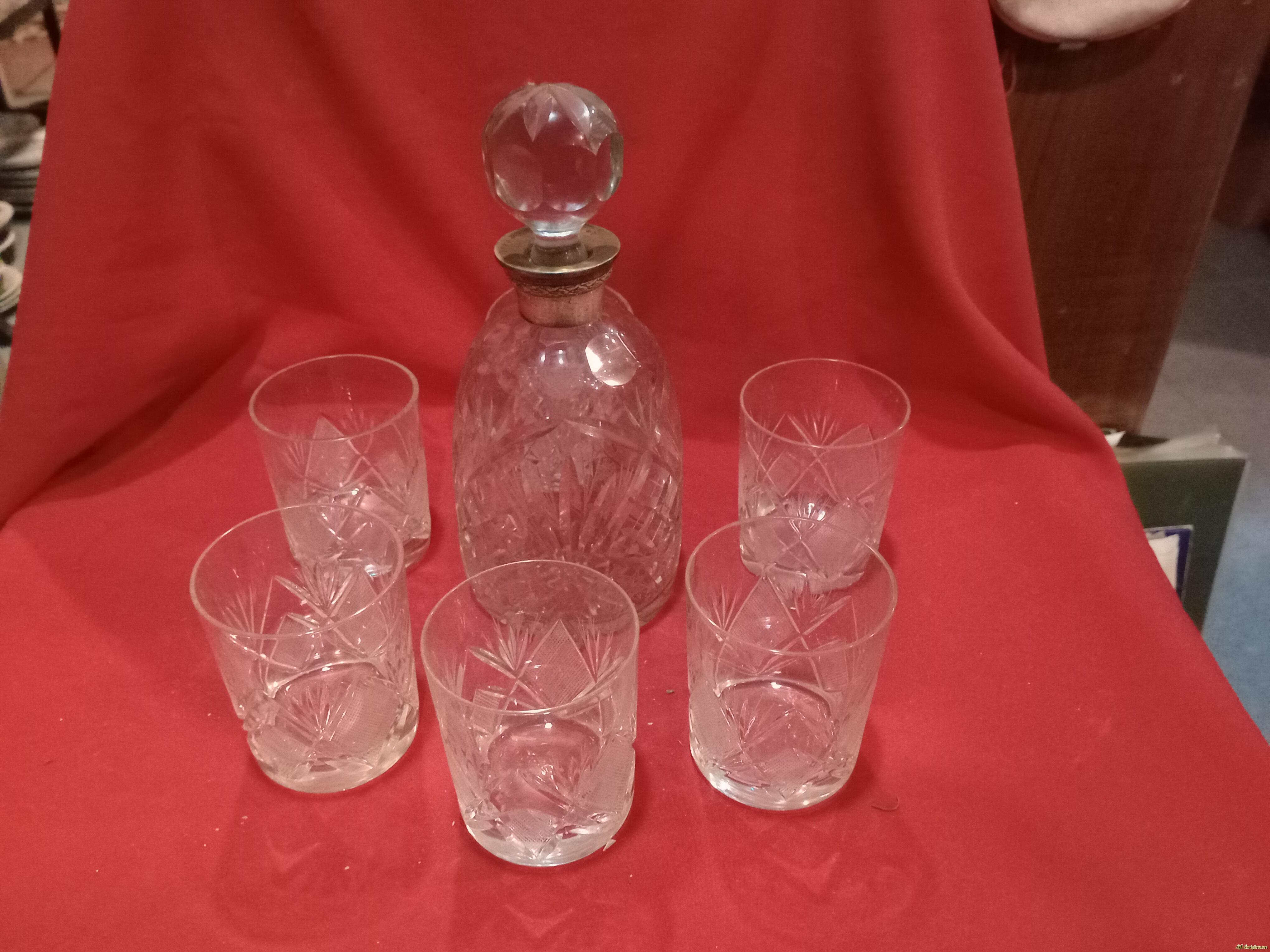 Botella de licor y vasos