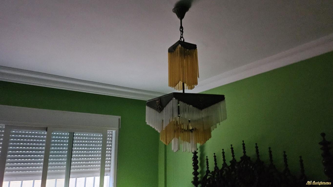 Lampara con flecos de cristales amarillos