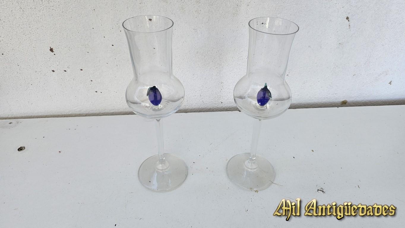 2 copas con figuras de murano
