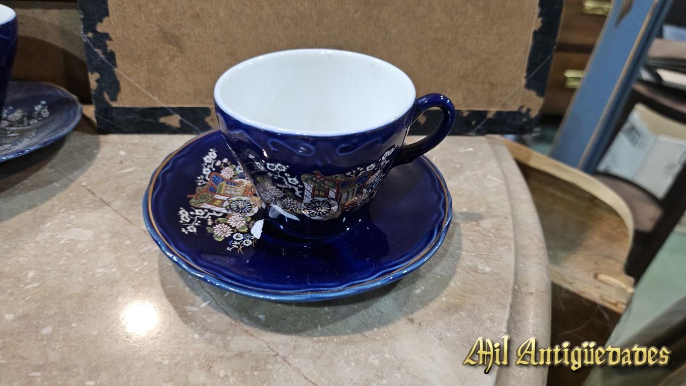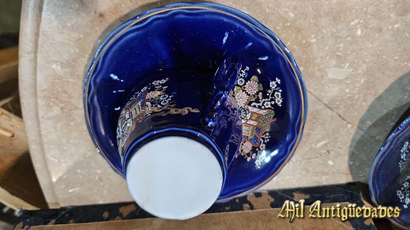 Taza y plato porcelana azul