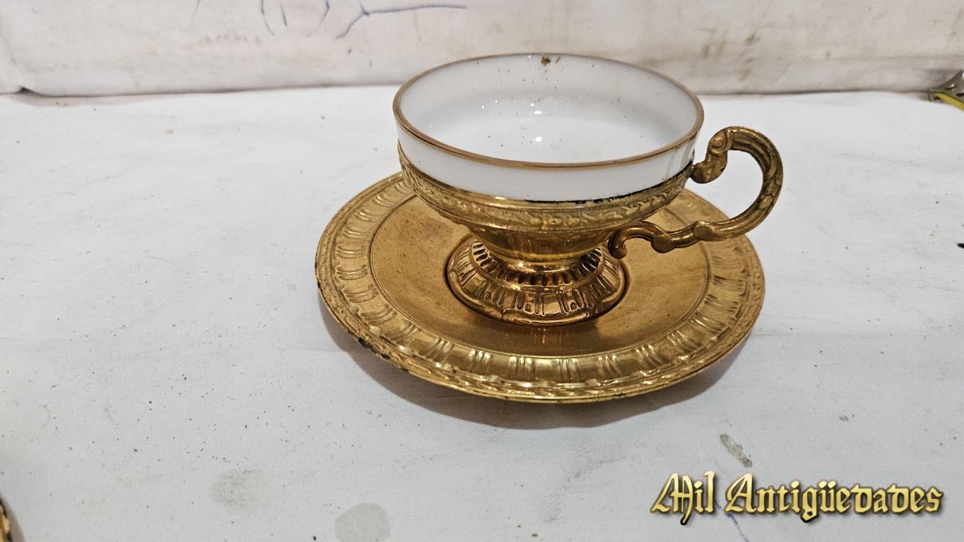 Taza y plato demetal dorado