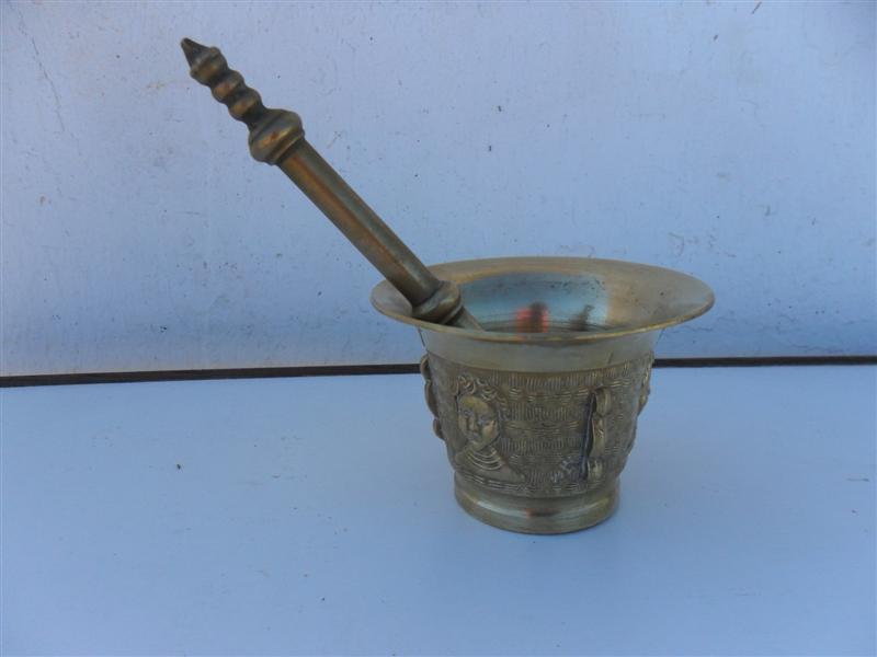 Mortero de bronce con cabezas