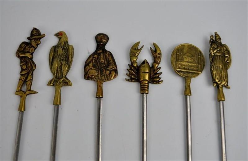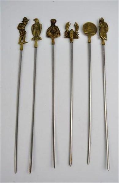 Conjunto de 6 espetos con cados figuras de bronce