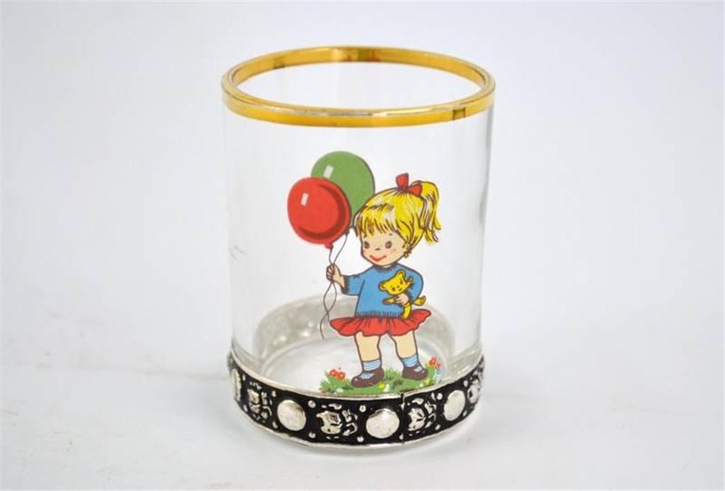 Vaso de cristal niño con franja en plata