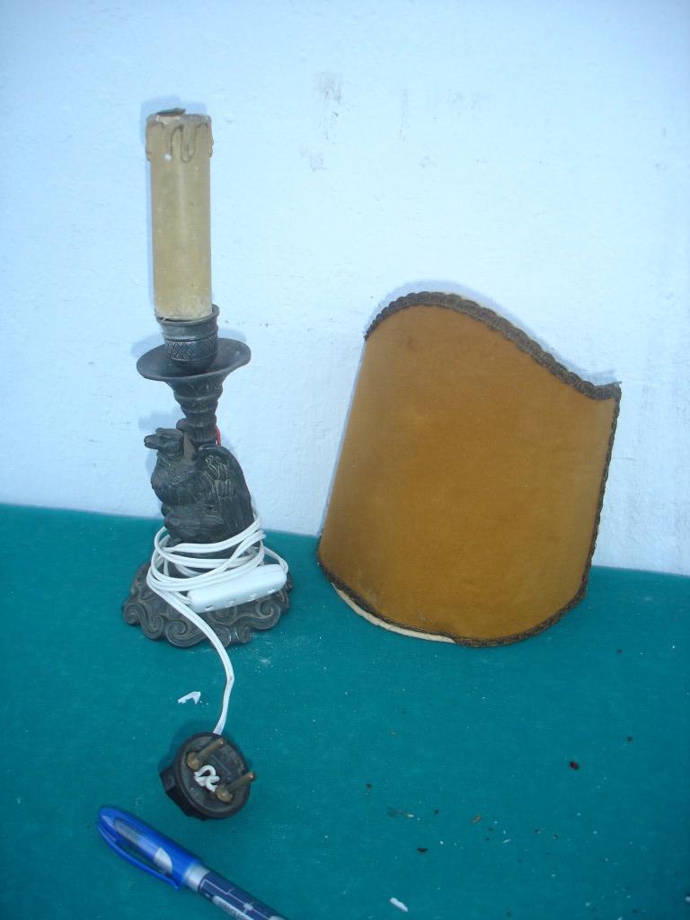 En buen estado de conservacion, con medidas de 28cm sin la tulipa.Se le podría enviar más fotografías por wasap y portes sale 5€.