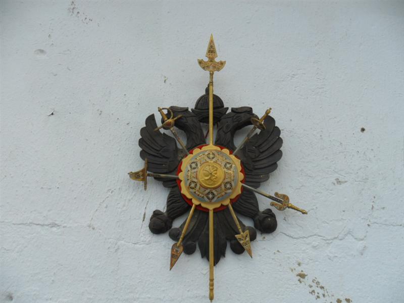 Escudo de madera con lanzas y espadas de toledo