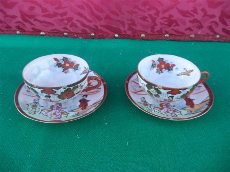 Pareja de tazas y platos oriental