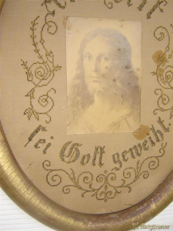 Marco ovalado y lamina bordada